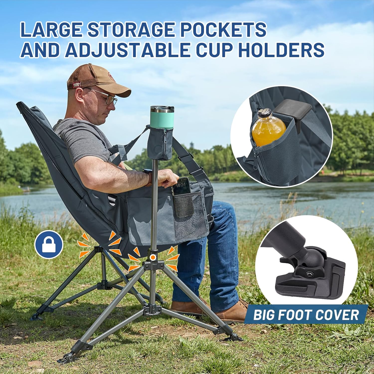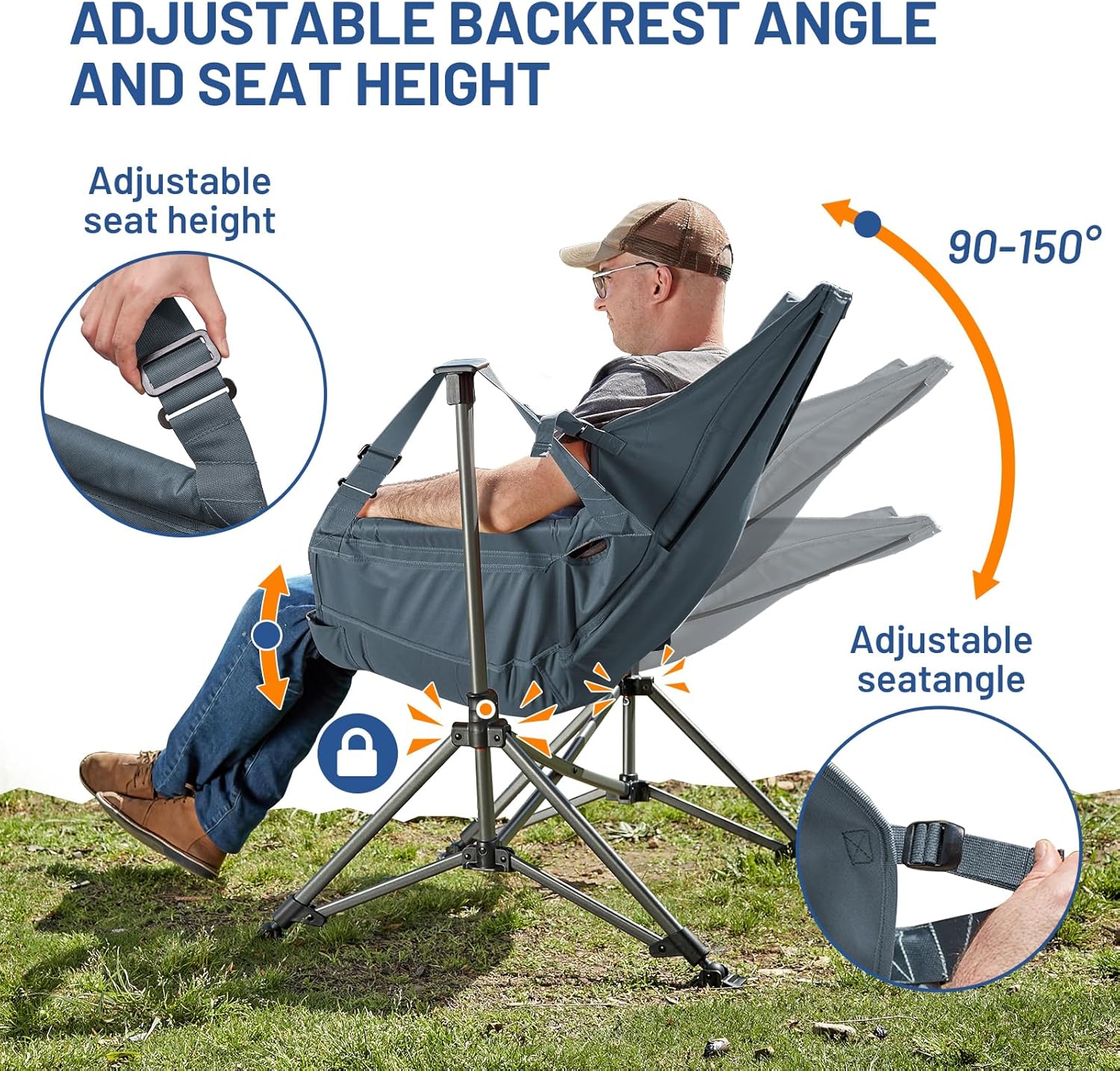 Designed for maximum relaxation, this camping chair features an adjustable back and seat height, allowing you to customize your seating experience to suit your preferences. The innovative hammock design cradles your body, promoting a sense of weightlessness as you sway gently in the breeze.